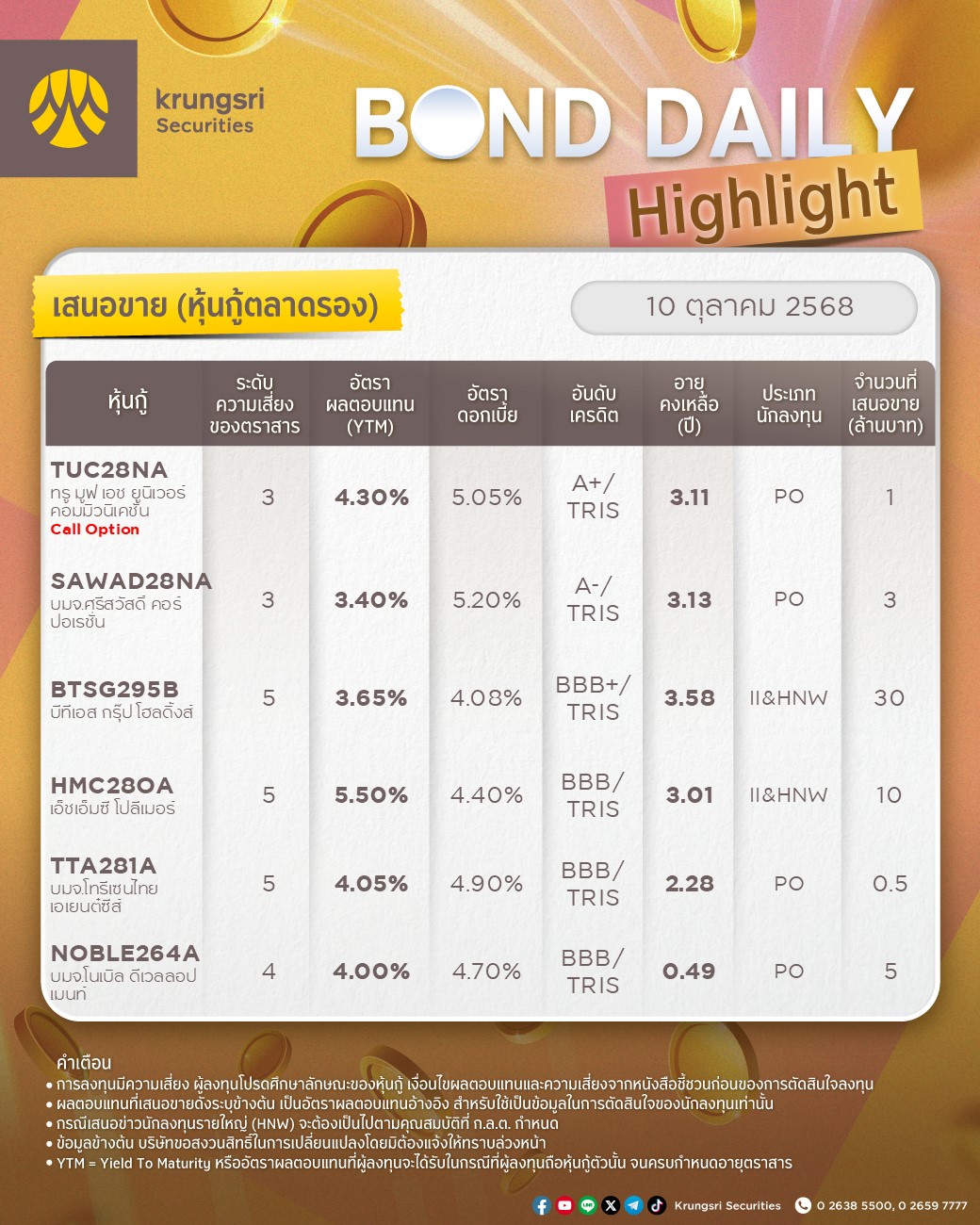 10/10/68 | หุ้นกู้/พันธบัตร | Bond Daily Highlight 10/10/2025 | |