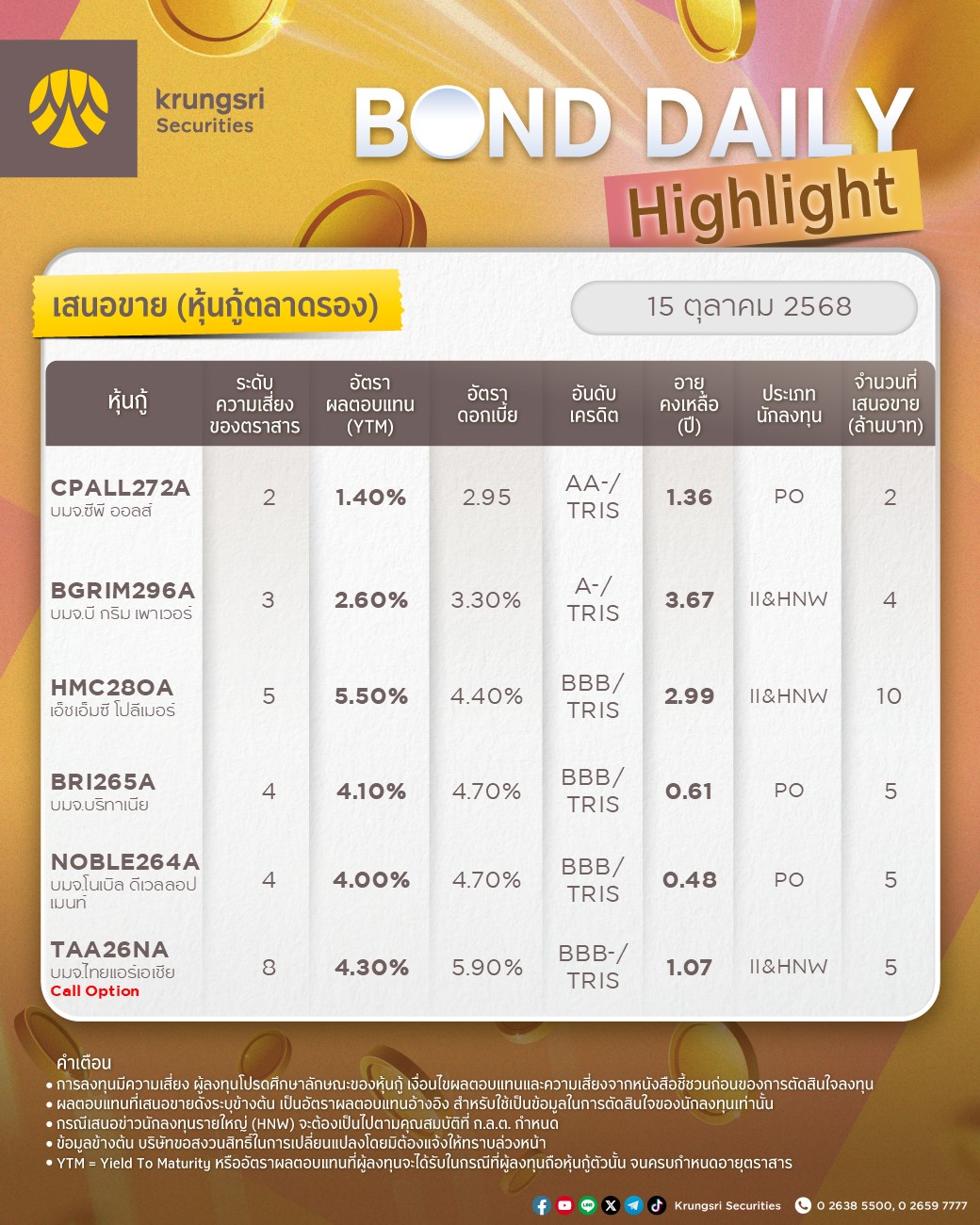 15/10/68 | หุ้นกู้/พันธบัตร | Bond Daily Highlight 15/10/2025 | |