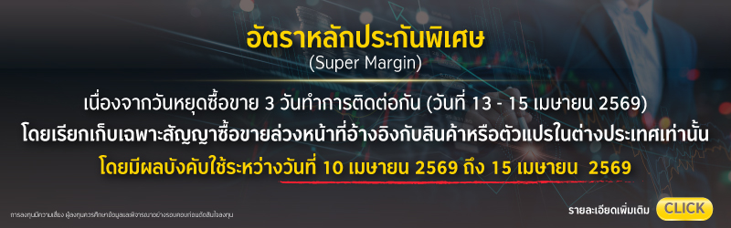 แจ้งอัตราหลักประกันสัญญาซื้อขายล่วงหน้า 07 เม.ย. 69 เป็นต้นไป