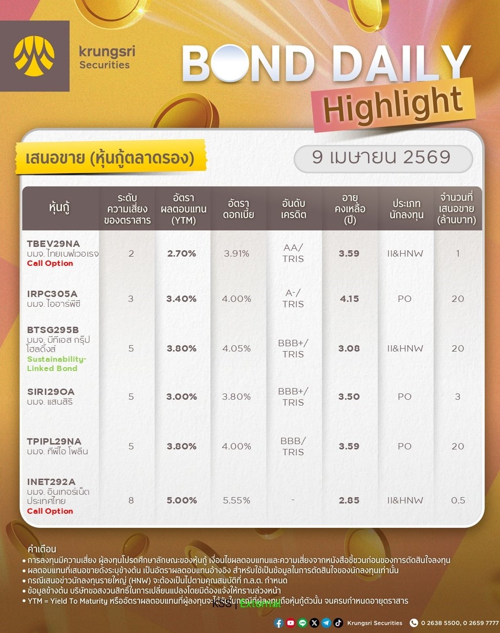 รายชื่อหลักทรัพย์ที่มีการเปลี่ยนแปลงอัตรามาร์จิ้นเริ่มต้น มีผลบังคับใช้ 1 เม.ย. 69