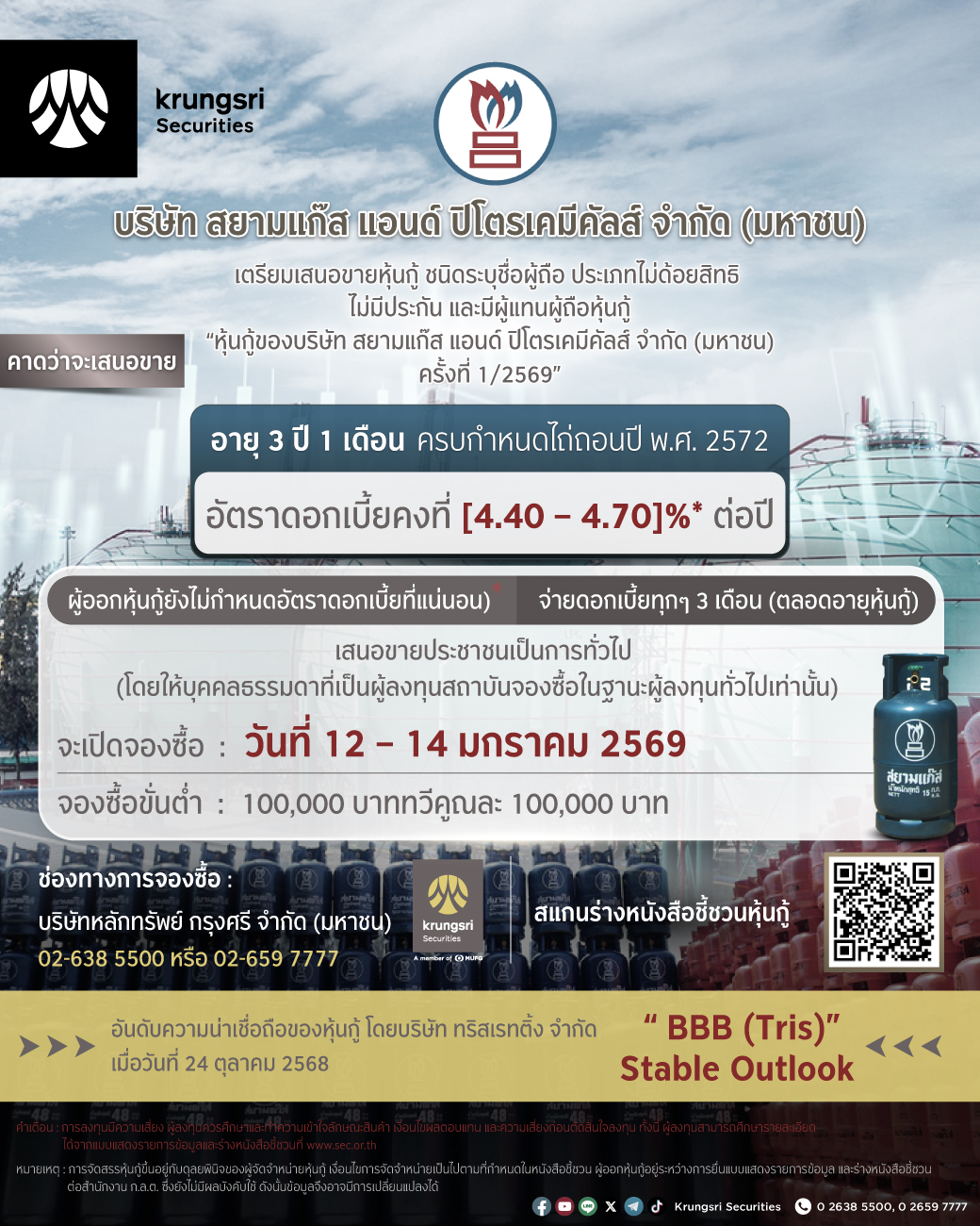 หุ้นกู้เสนอขาย ของ บริษัท สยามแก๊ส แอนด์ ปิโตรเคมีคัลส์ จำกัด (มหาชน)