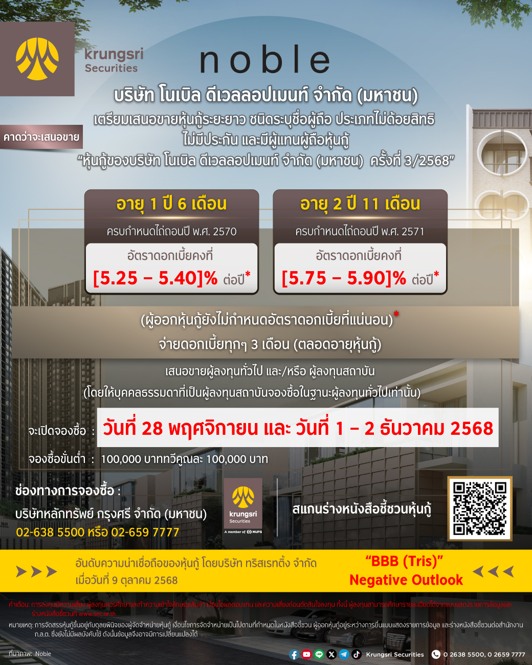 หุ้นกู้เสนอขาย ของ บริษัท โนเบิล ดีเวลลอปเมนท์ จำกัด (มหาชน)