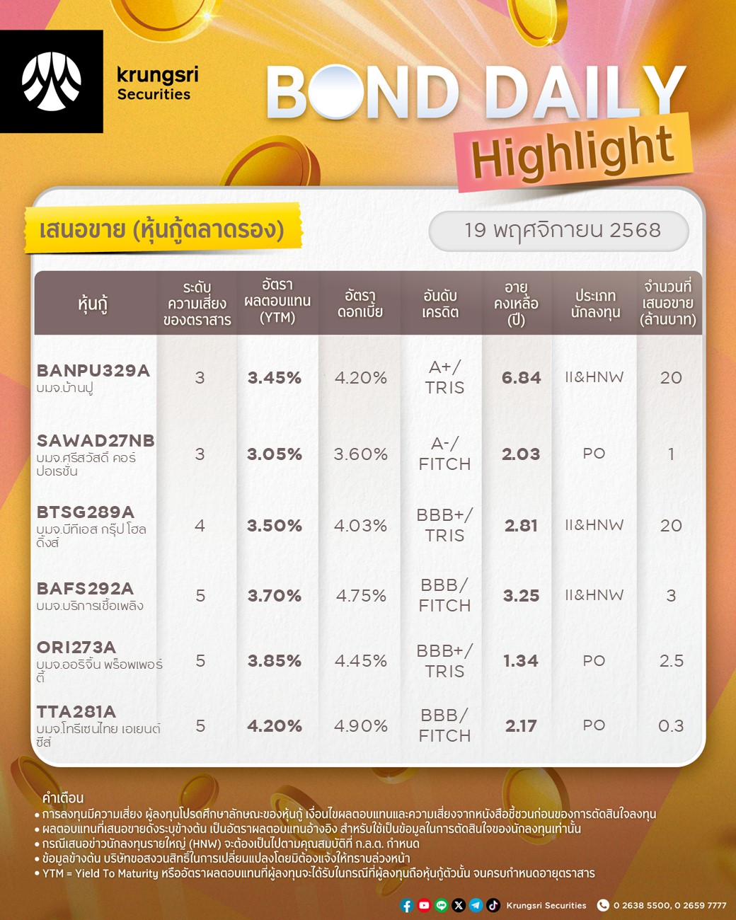 | 12/11/68 | หุ้นกู้/พันธบัตร | Bond Daily Highlight 12/11/2025 |